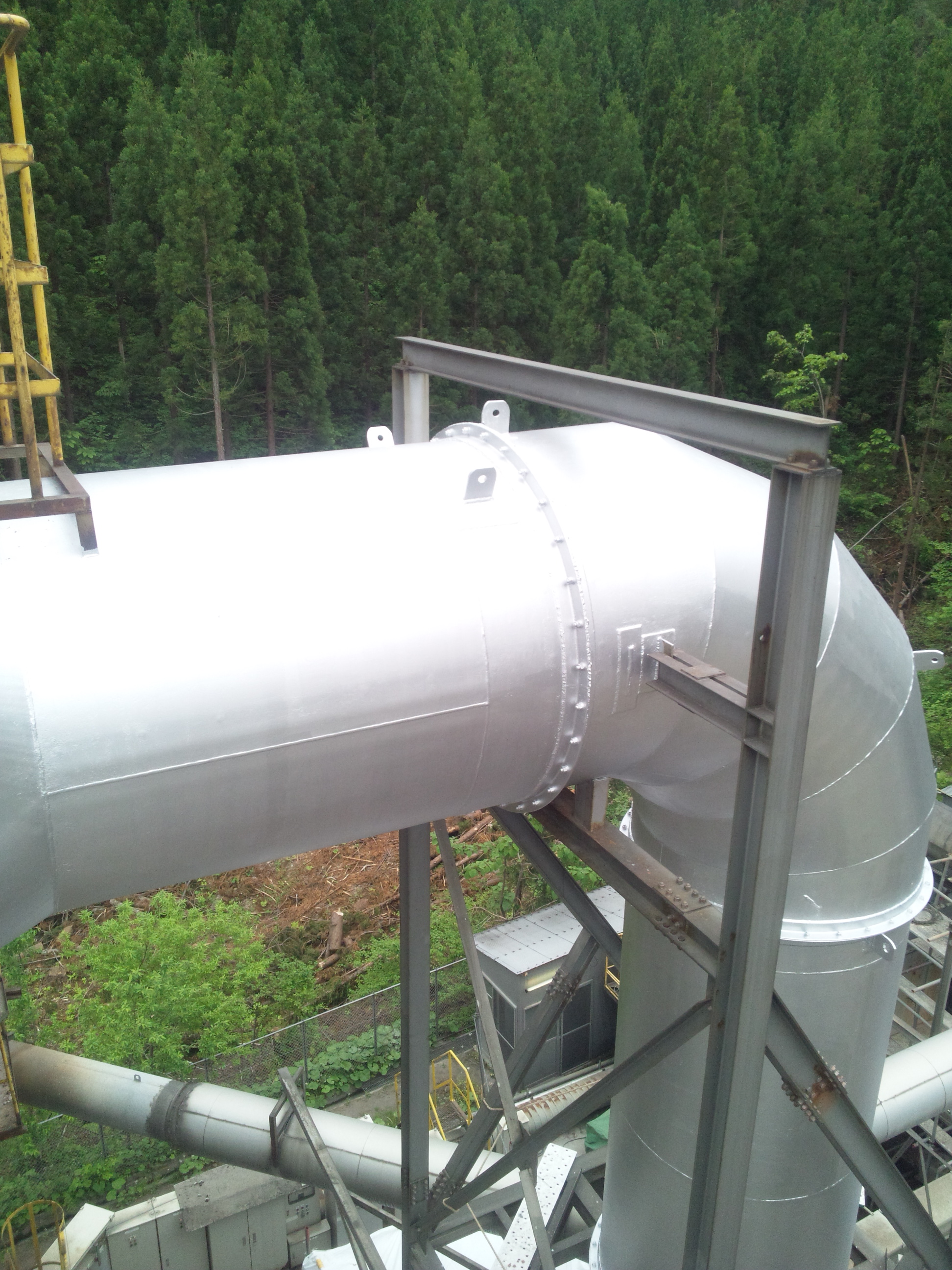 山の中のプラントⅥ 地上20mの高さで高所作業車を用いての作業。 グラインダーにてケレン、専用プライマー、耐熱600℃のシルバー塗料の塗装工事。 安全帯は欠かすことのできない危険な作業でしたが、安全第一と集中力を研ぎ澄まし無事完了いたしました。 処理場の所長、並びに社員の皆様にはお気遣いいただきありがとうございました。 ツイート « 山の中のプラントⅤ 住宅塗り替え »