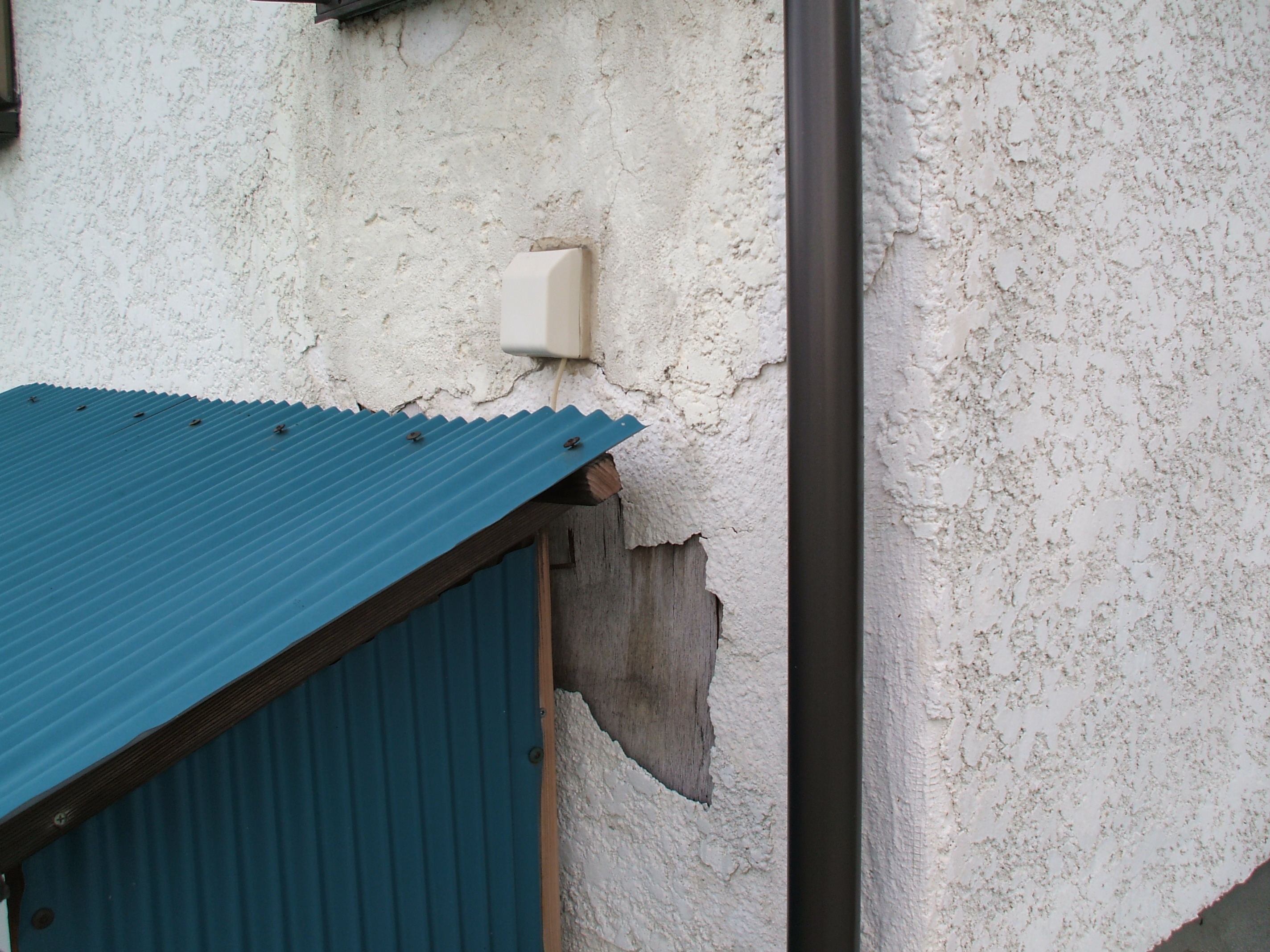 仕上げは、スタッコ吹付ですが剥がれていますね。
