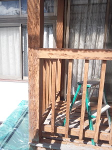 2回目の塗り替えで使用した合成樹脂塗料が非常に密着状況が悪く軽く触れただけで、バサバサと剥がれてきます。(前回塗装したのはウチではなく他所のペンキ屋です。)