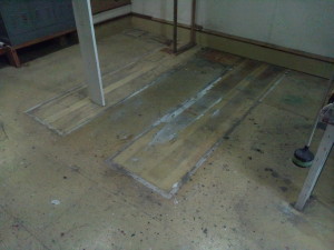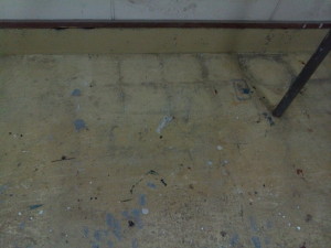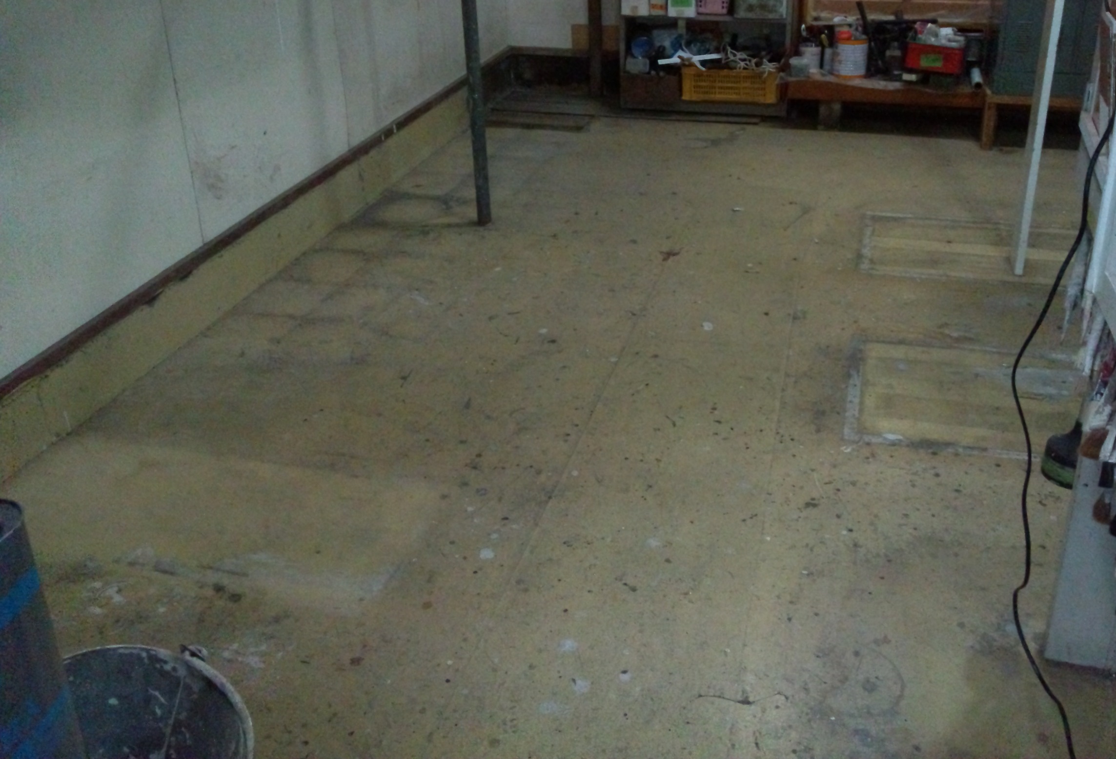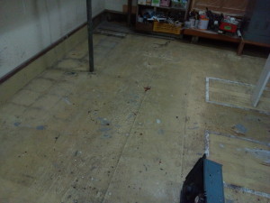 自社の材料置き場の床がだいぶ汚れてきました。