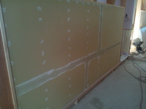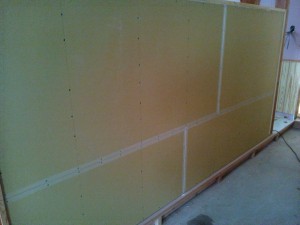 1つの壁を4枚のボードで構成しています。将来ここの部分がイチバンひび割れが起こりやすい部分になります。