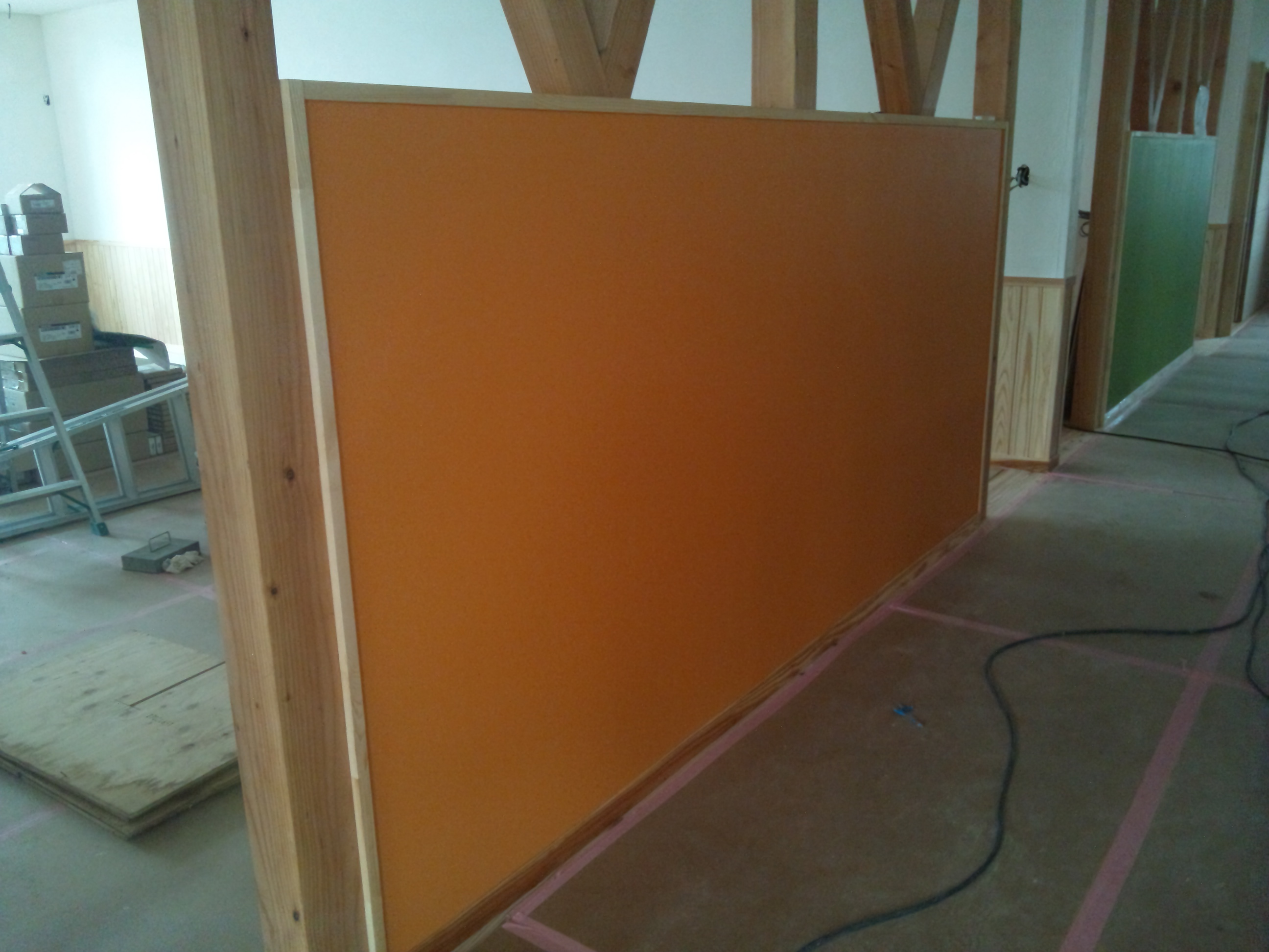 私は、黒板塗料なのでチョークの色が生える濃色をお勧め致したんですが、そこは幼稚園。
