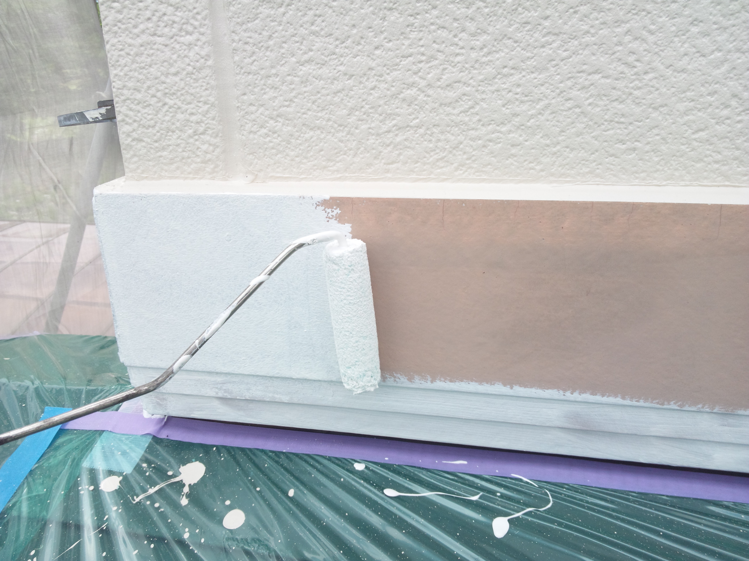幕板は表面がヘアークラックが発生していまして、透明なシーラーでは覆い隠せないと判断し厚幕シーラーと呼ばれるもので下塗りしていきます。