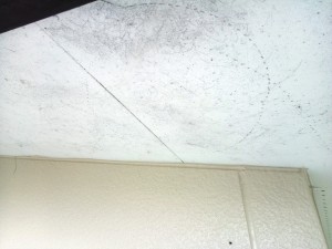 元々白い軒天だったんですが、くもの巣、カビ、なめくじの跡などで汚れる一方です。