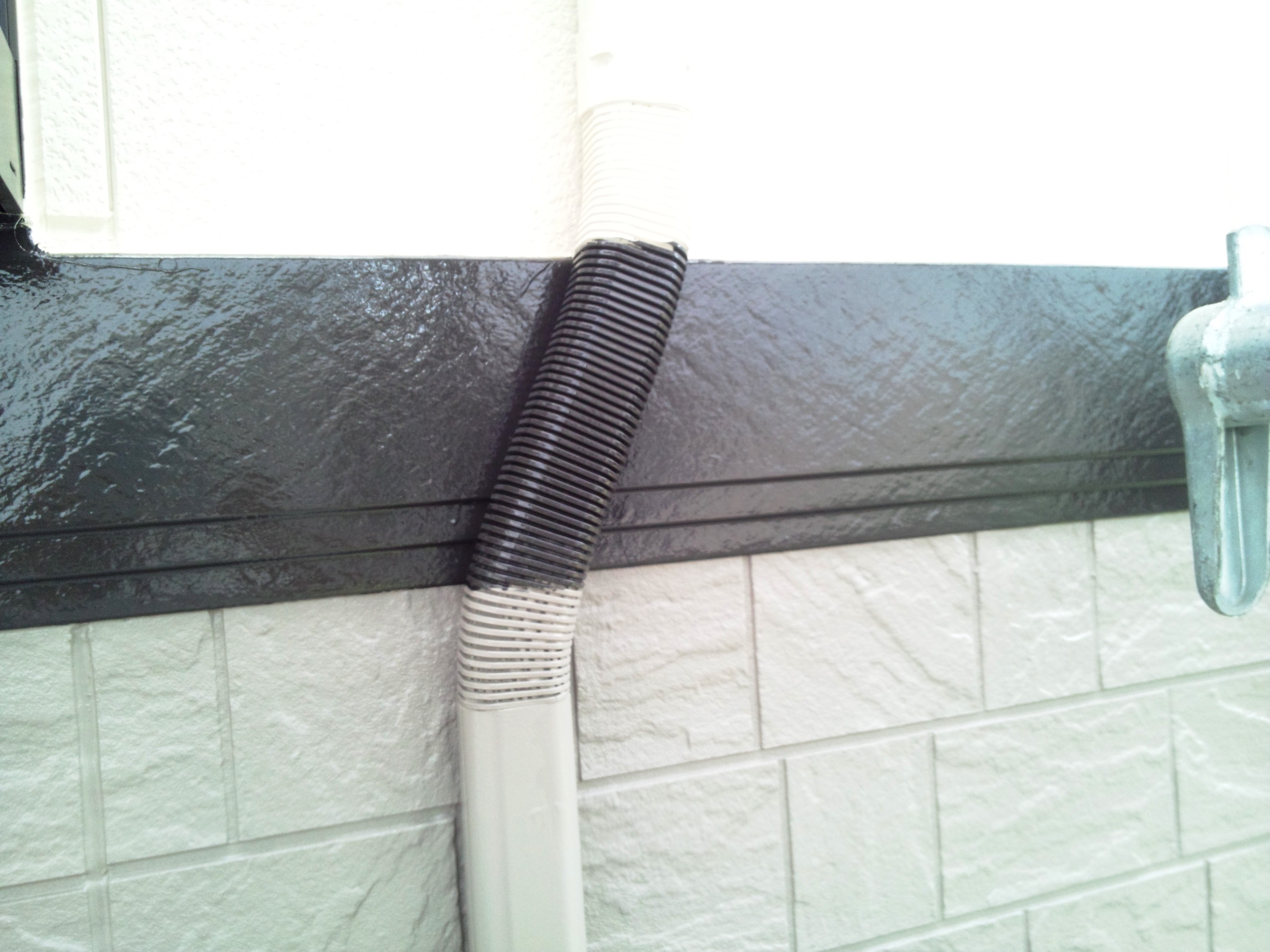 エアコンのパイプカバーがある所もご覧のとおり完璧に塗り分けます。