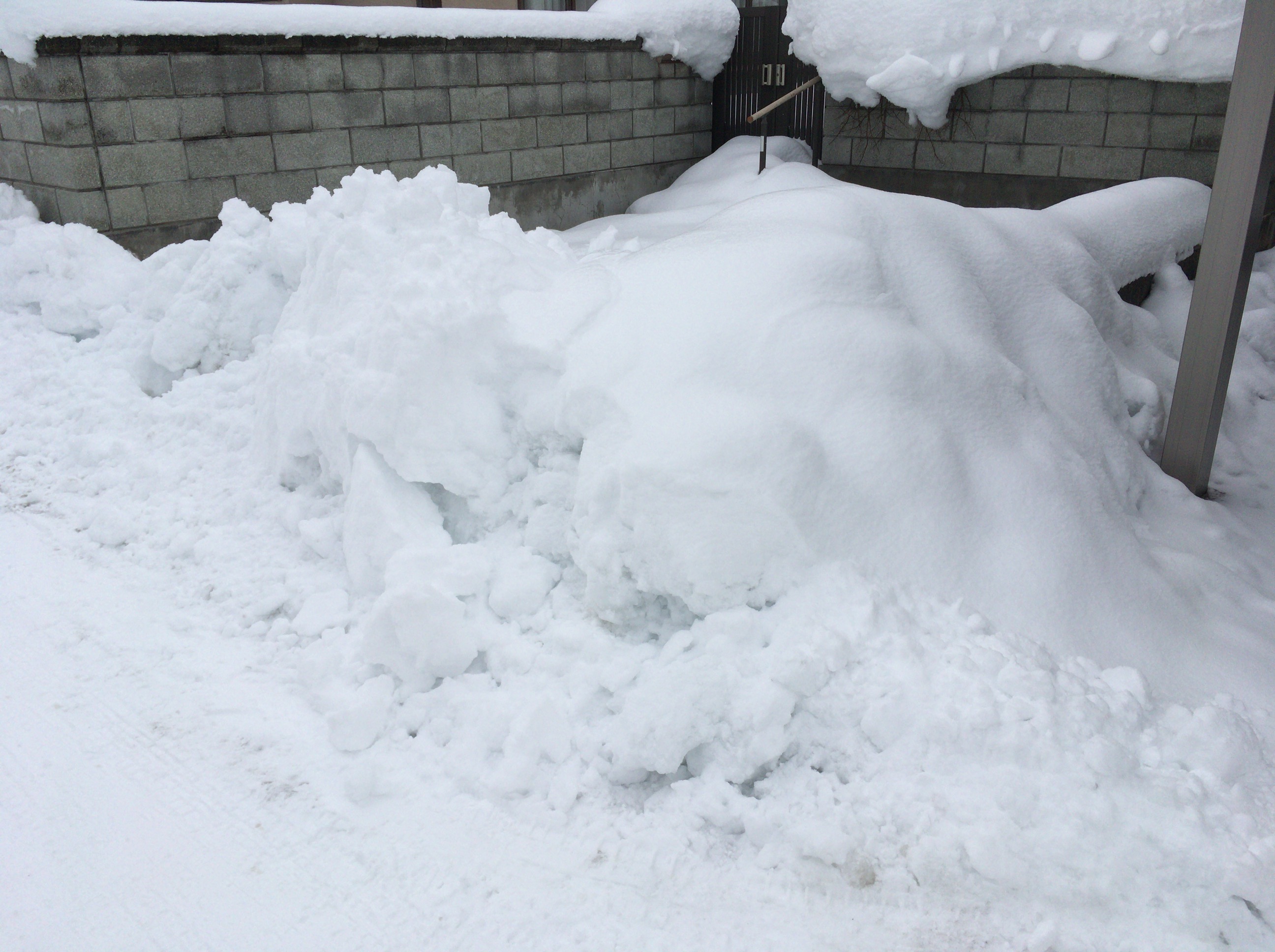 住人はいないので、駐車場の前には山のような雪、それも硬い雪があります。