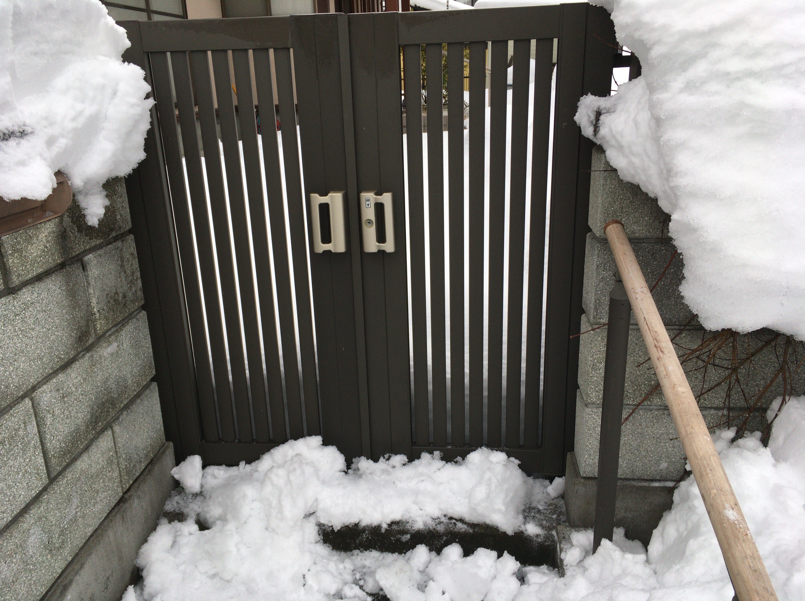 その為には、ブロック塀をよじ登り内側の雪を取りようやく明けることが出来るのです。