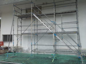 本日ご紹介するのは、外部の吹付け工事です。