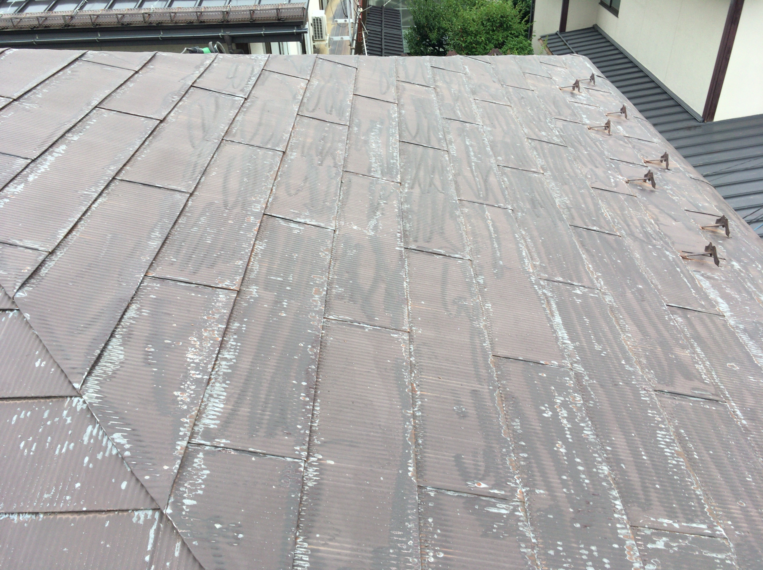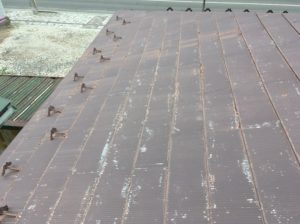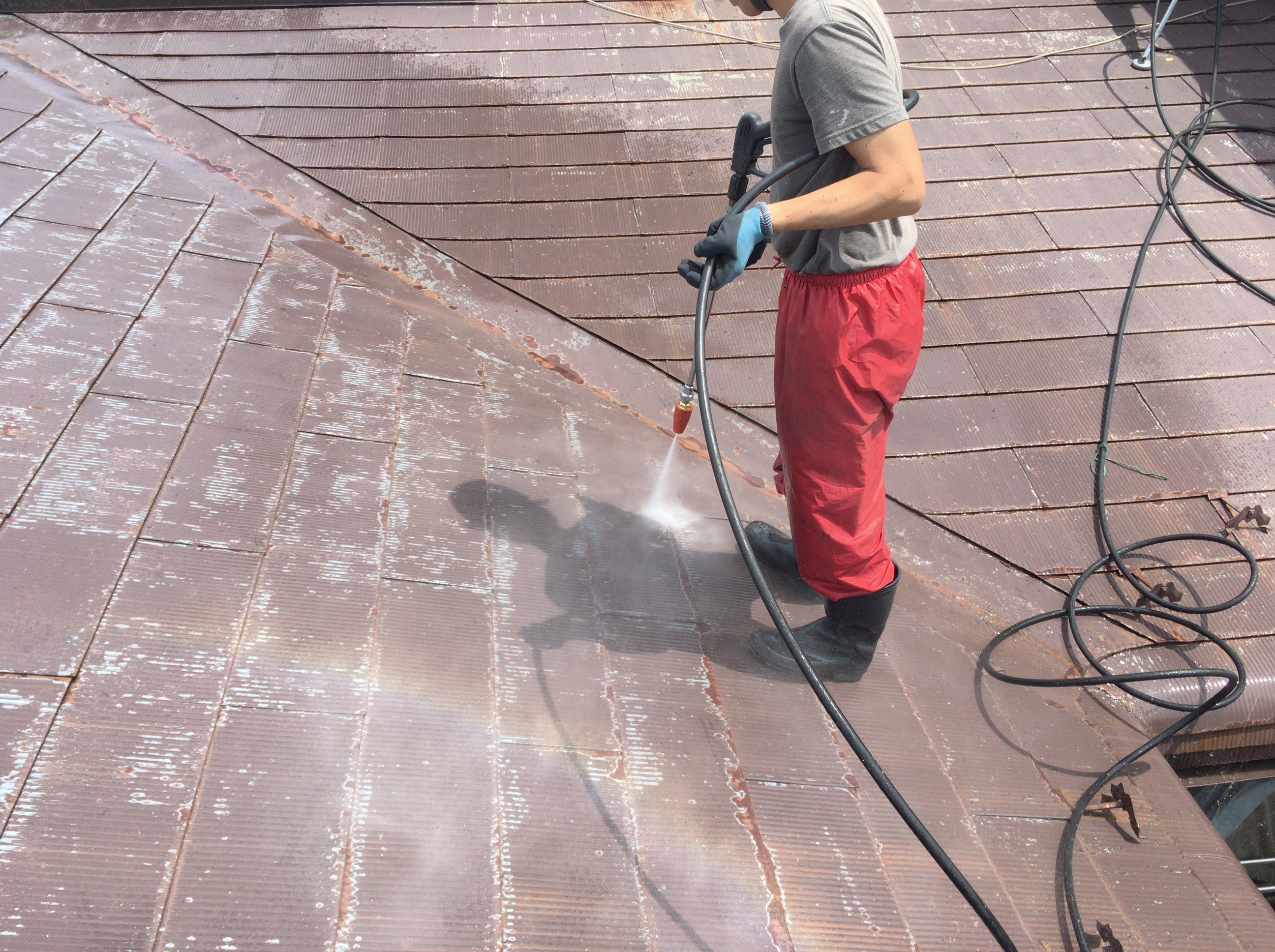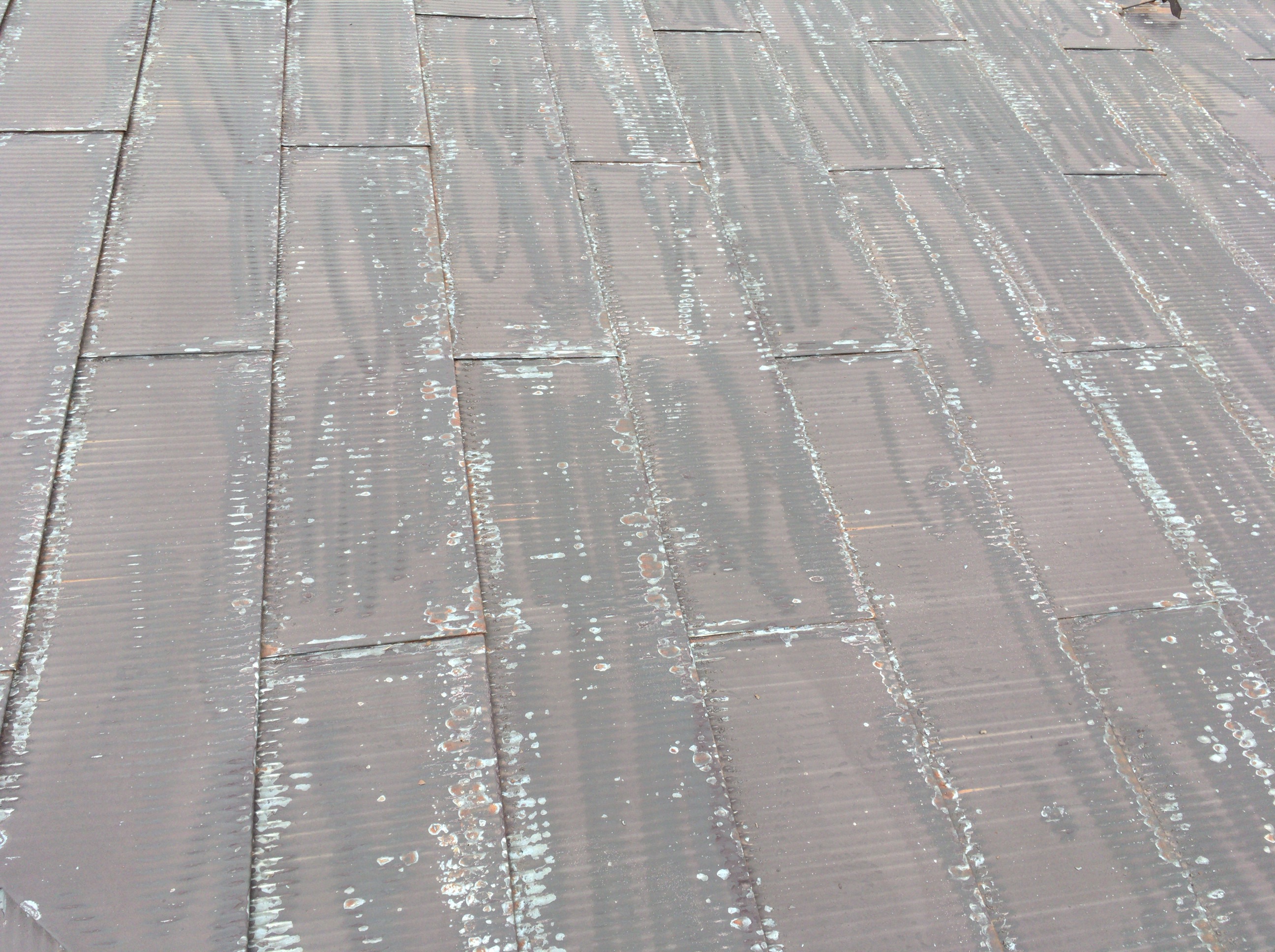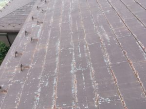 赤錆が取れて、脆弱塗膜を除去しましたので、より銀色のトタン下地が出てきたのがお判りだと思います。