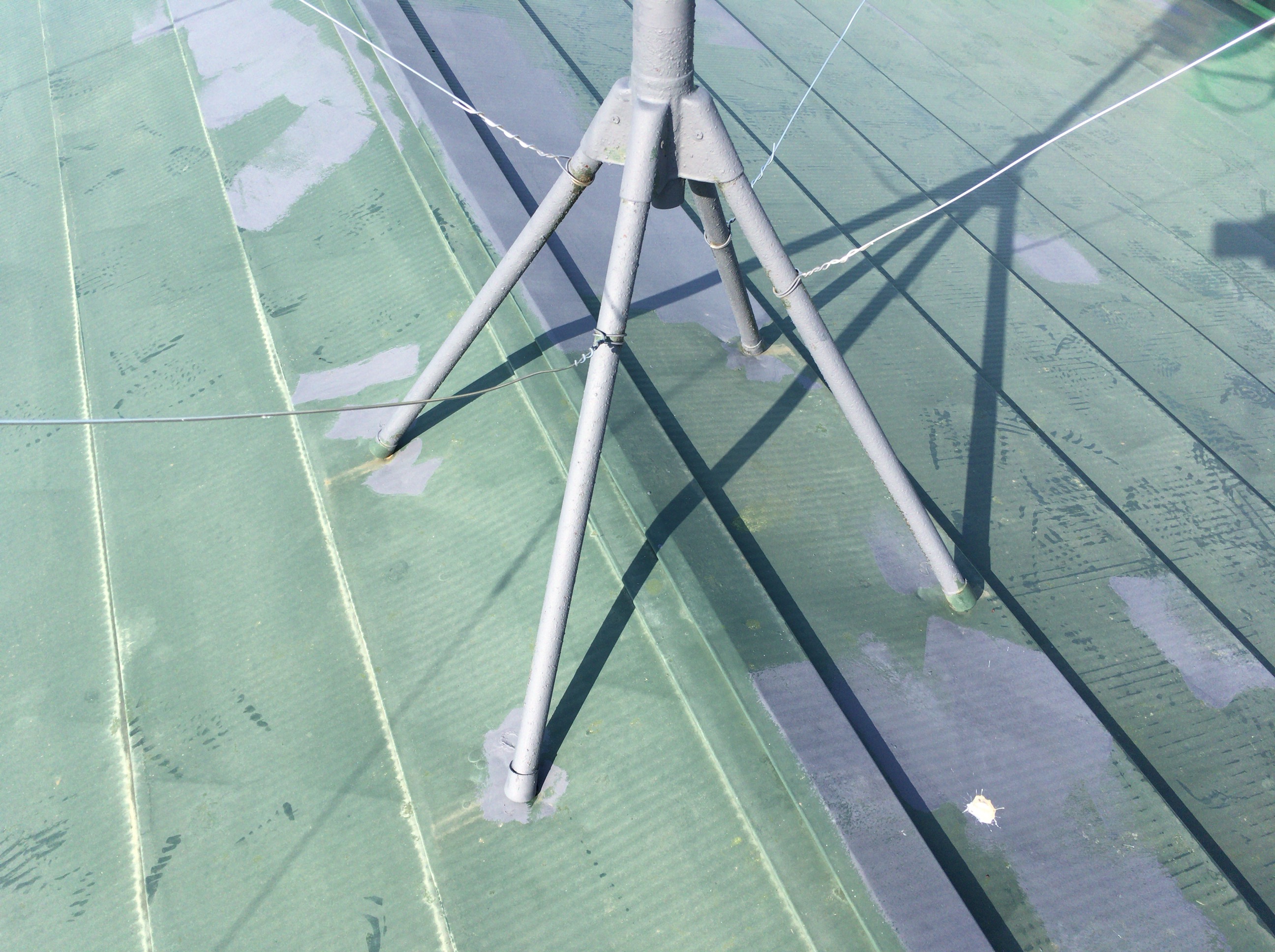 アンテナの足元も錆び止めし、後日屋根と同色で上塗りいたします。