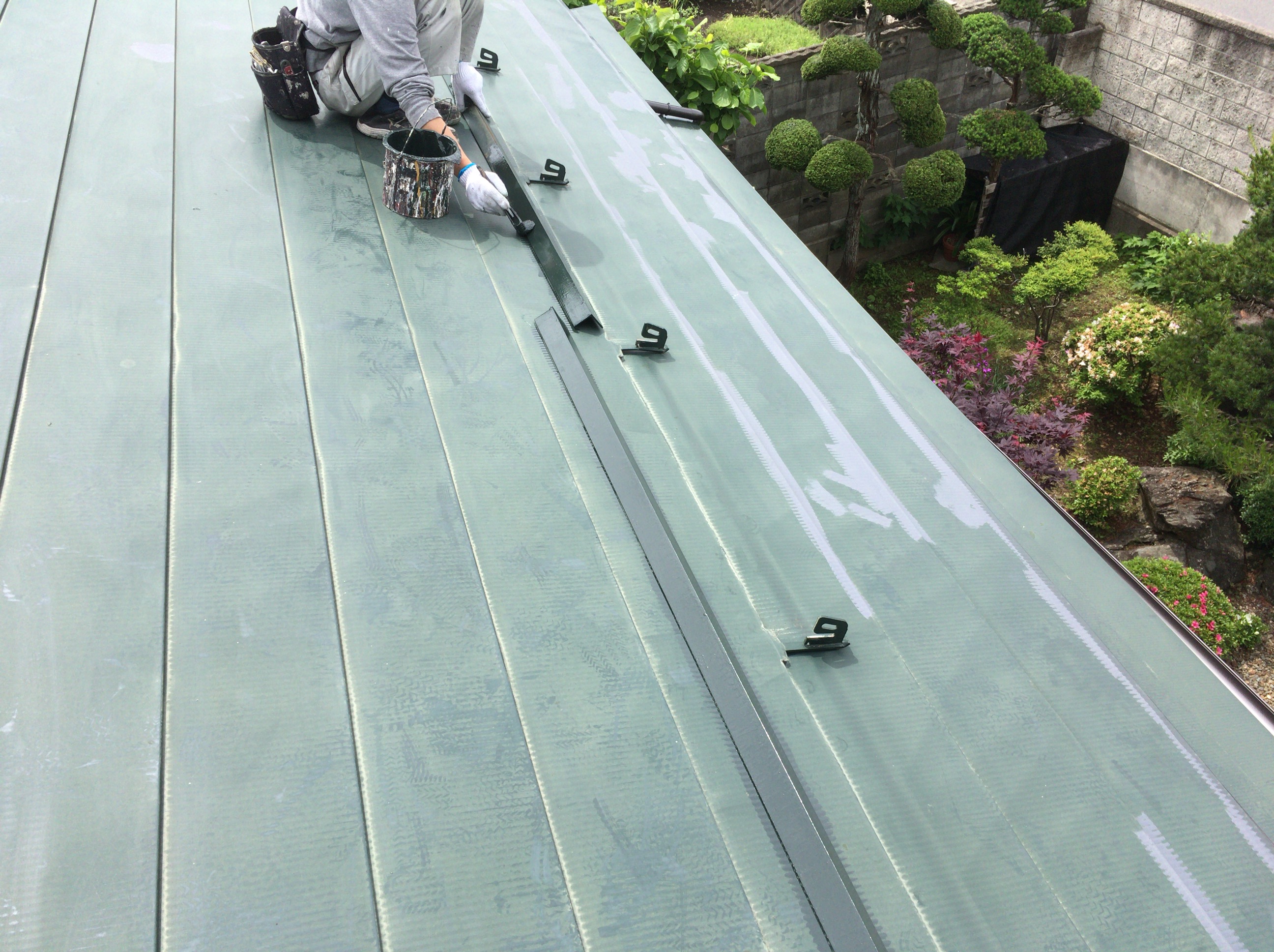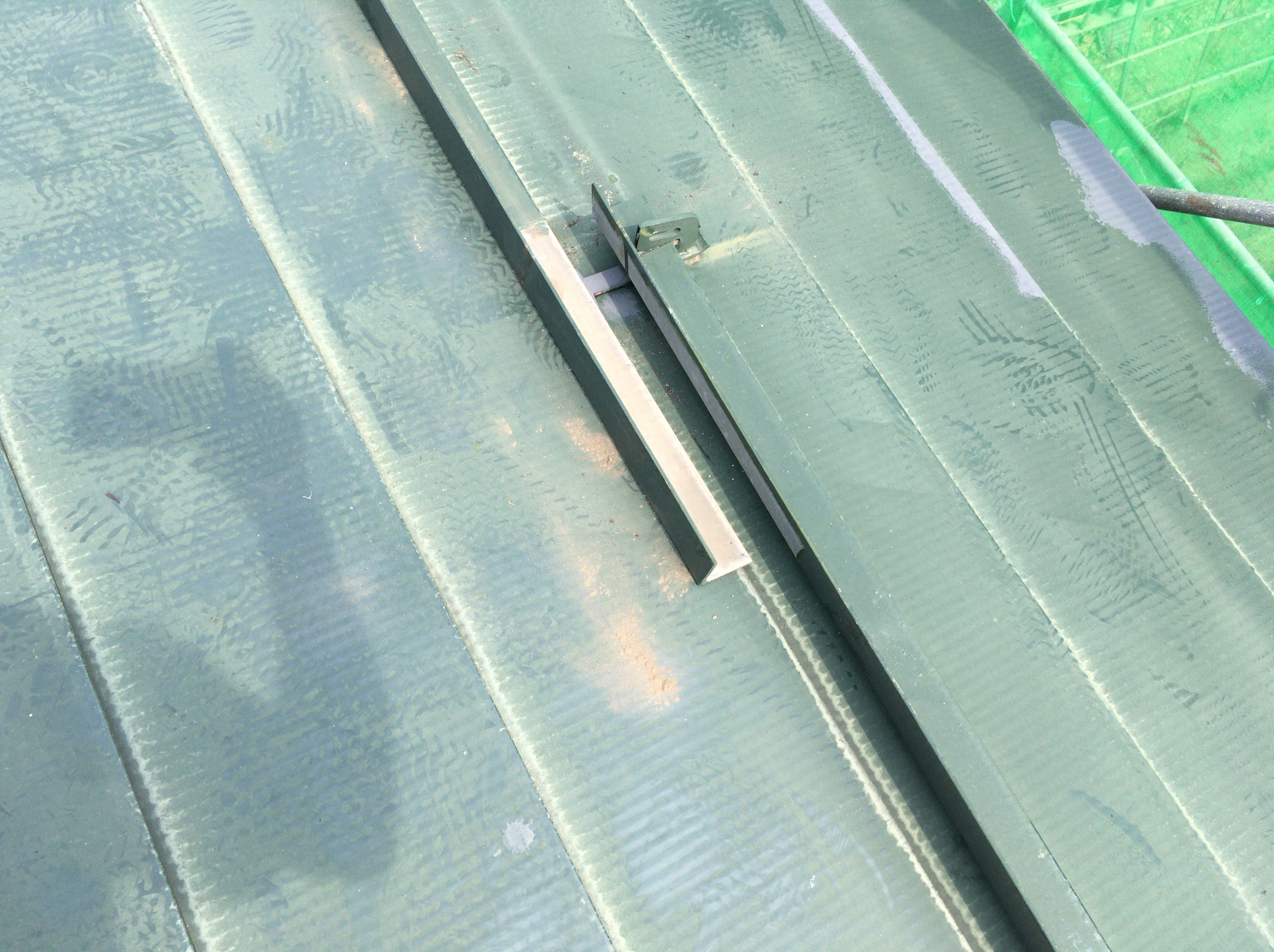 意外と雪止めアングルを塗らない業者が多いです。アングルも必ず錆びますから塗らないと大変なことになります。