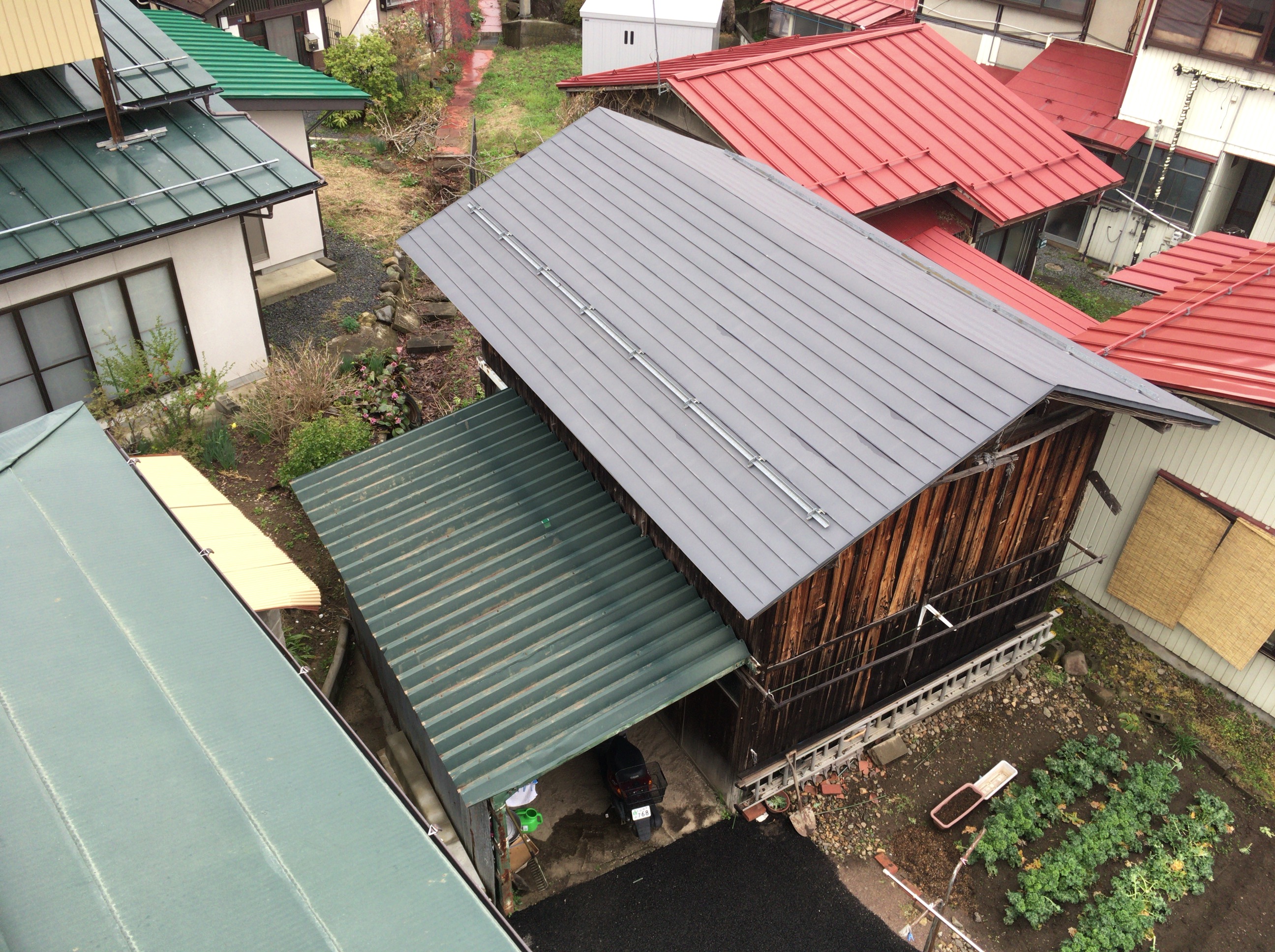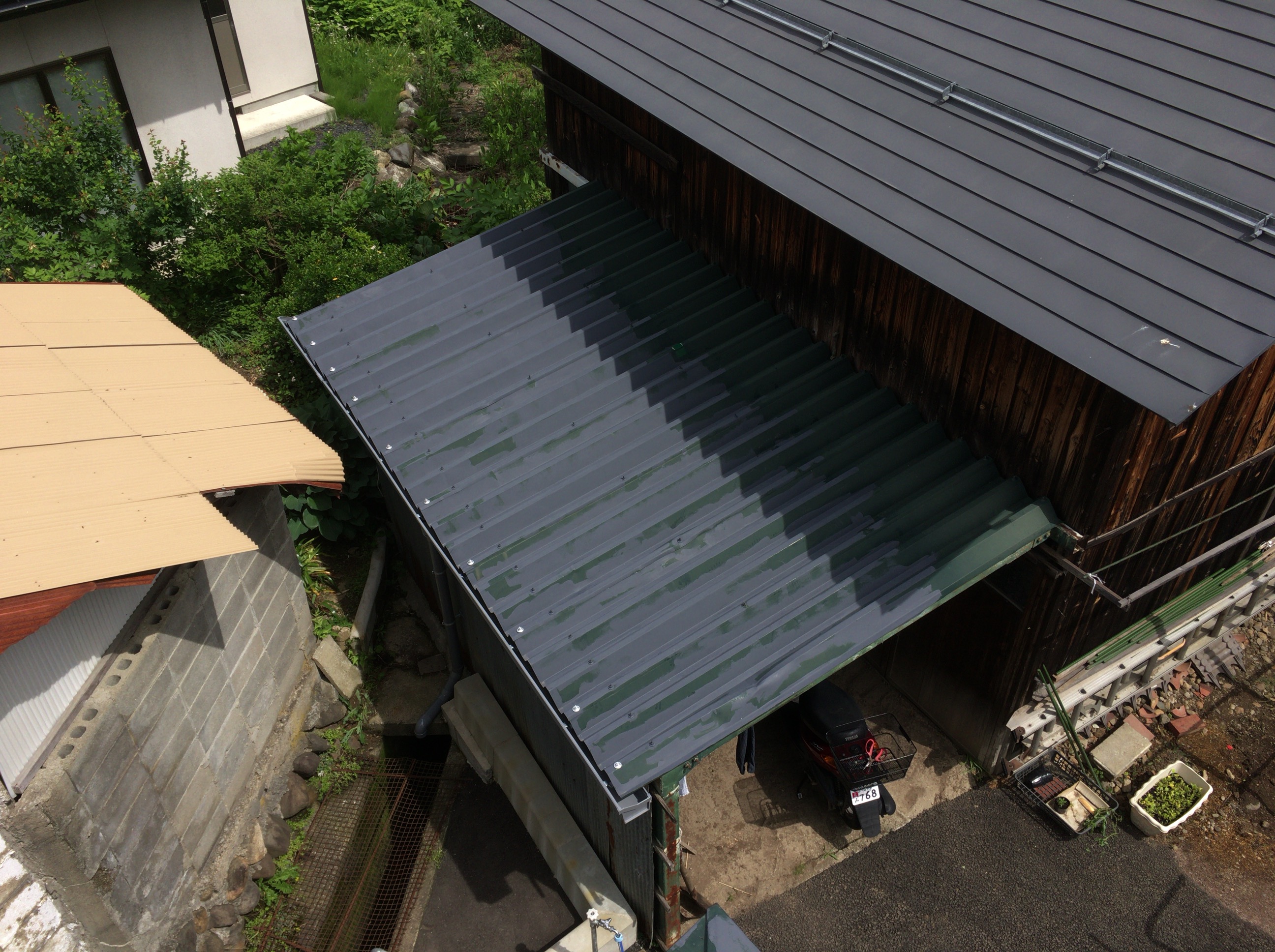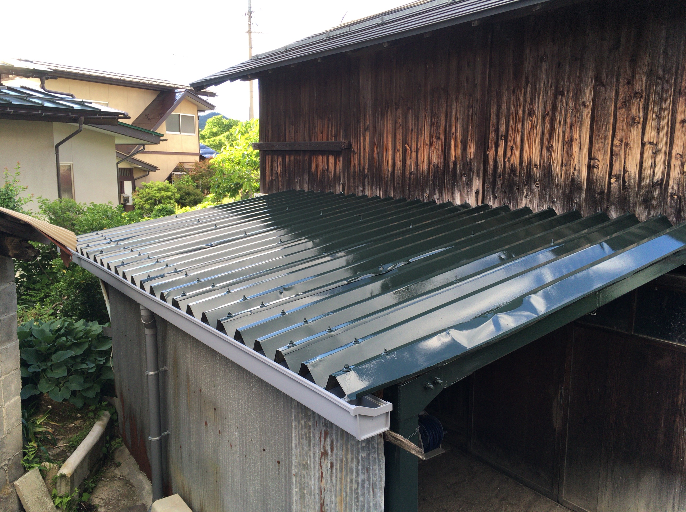 今日は物置小屋の折半屋根も