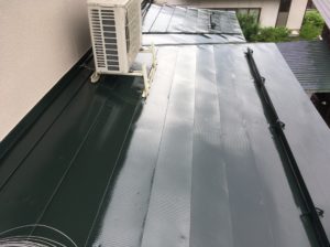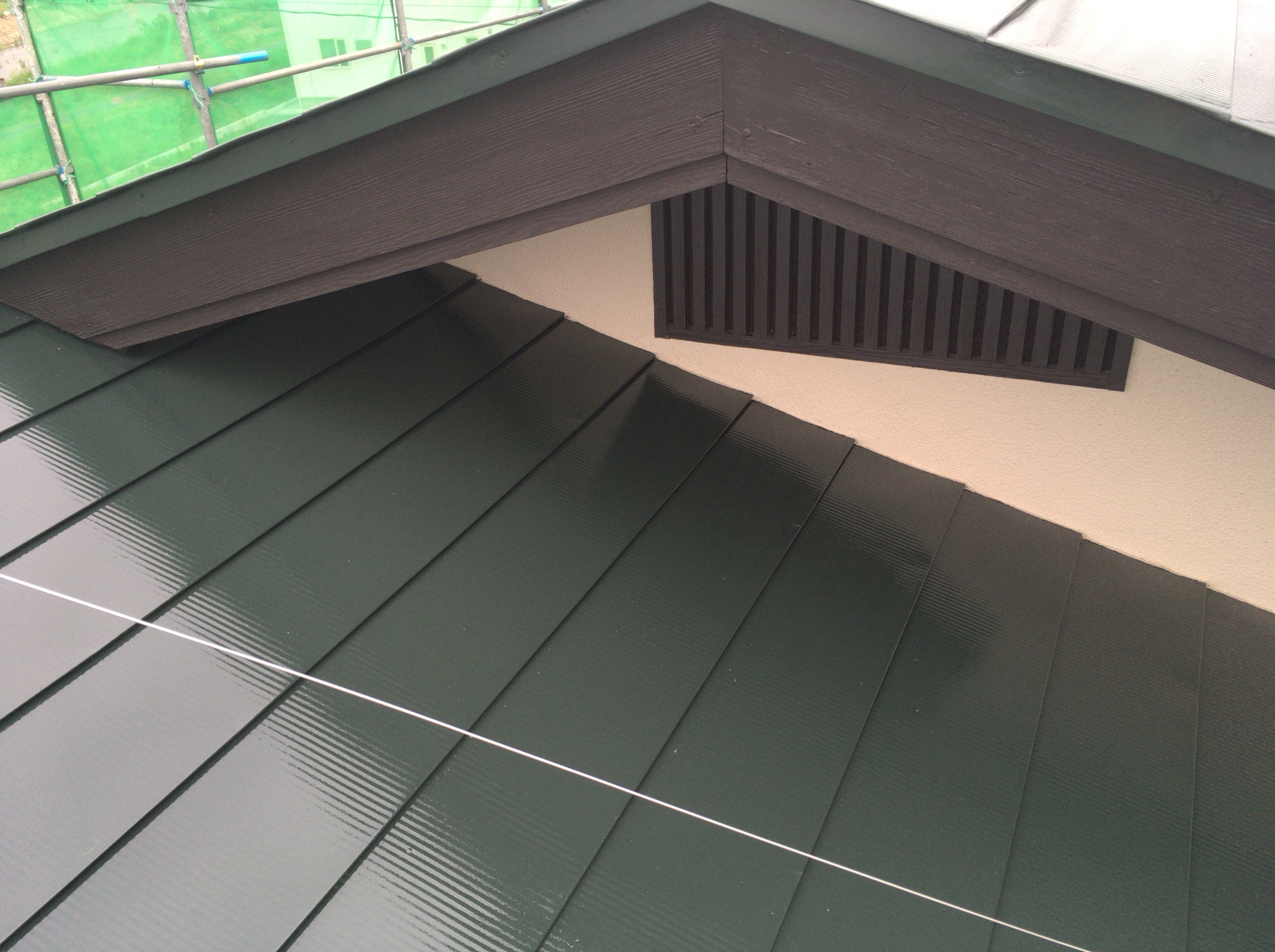 先日の施工前の汚れた屋根と比べると丁寧に掃除してクッキリと塗り分けらえているのがお判りだと思います。