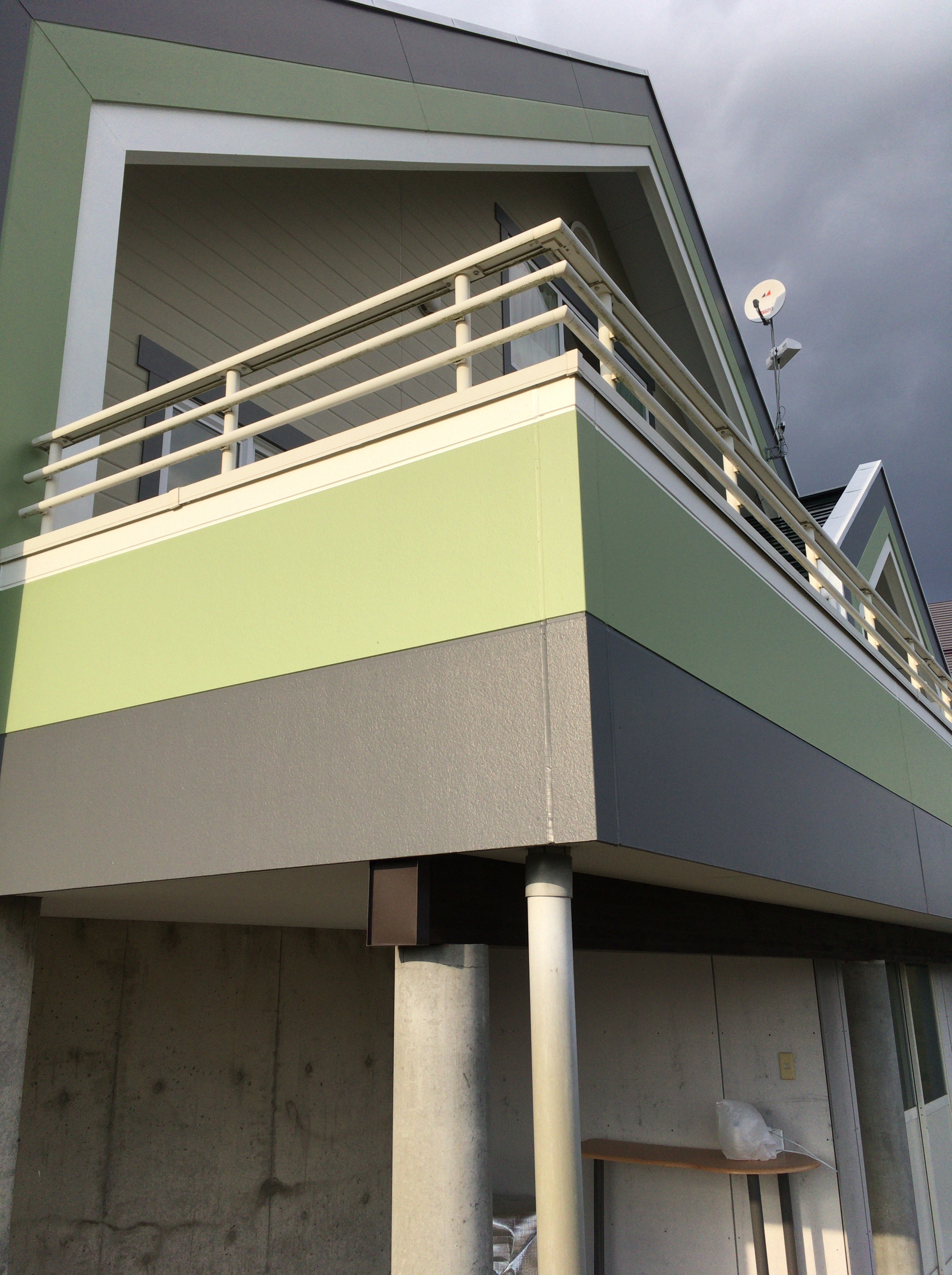 シーリング充填後、3色の色を合わせるため調色作業をし3色の塗り分けをいたしました。完璧です。