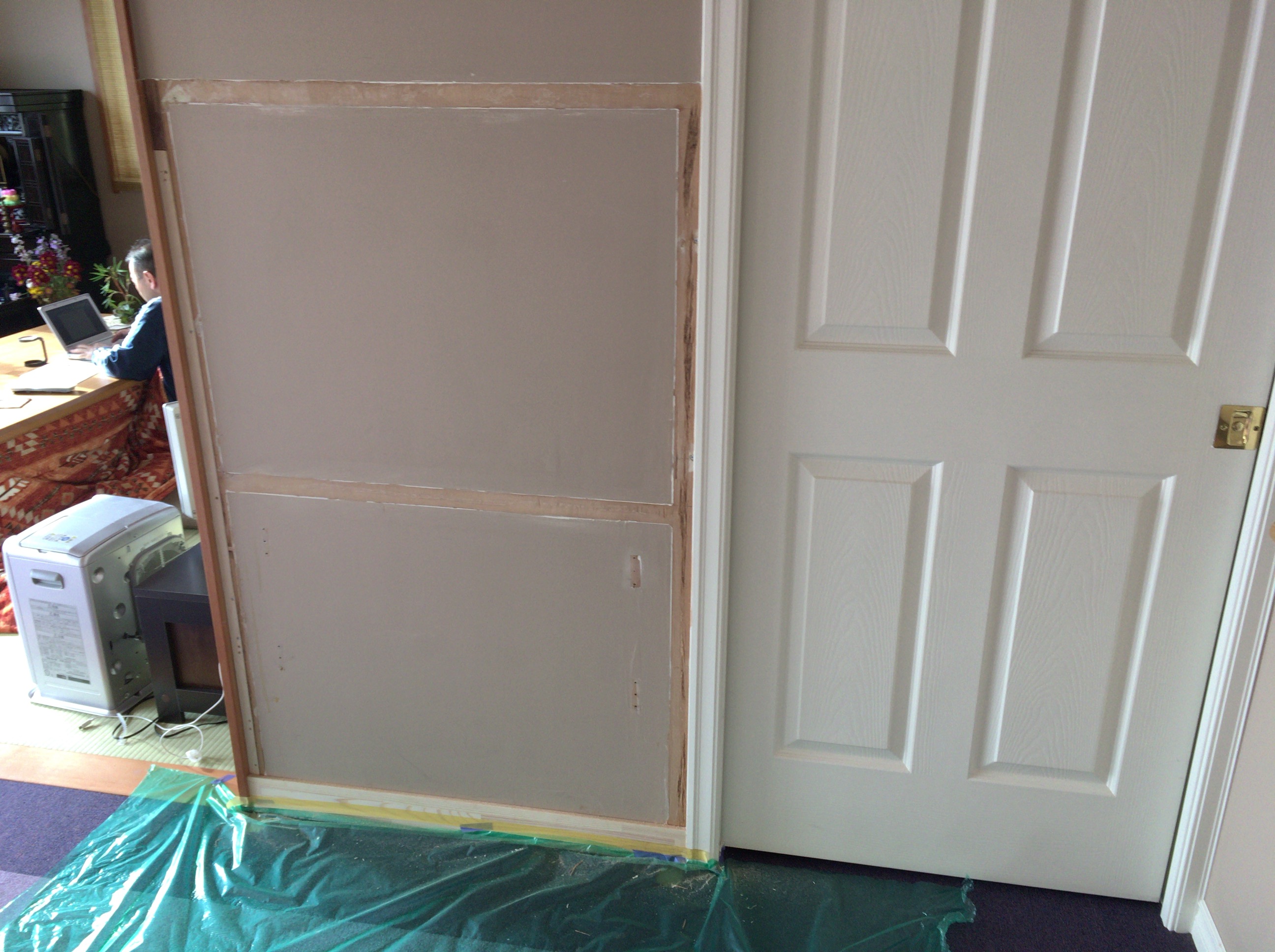 以前はここに折り畳み式のテーブルがあったそうなんですが、必要ないとのことで工務店さんから撤去してもらった跡になります。