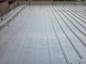 一般的にはこれで塗装完了。めでたしめでたしなんですが、こちらの現場はもう一仕事残っているんです。塩ビシートを施工前の状態に元に戻さなければなりません。