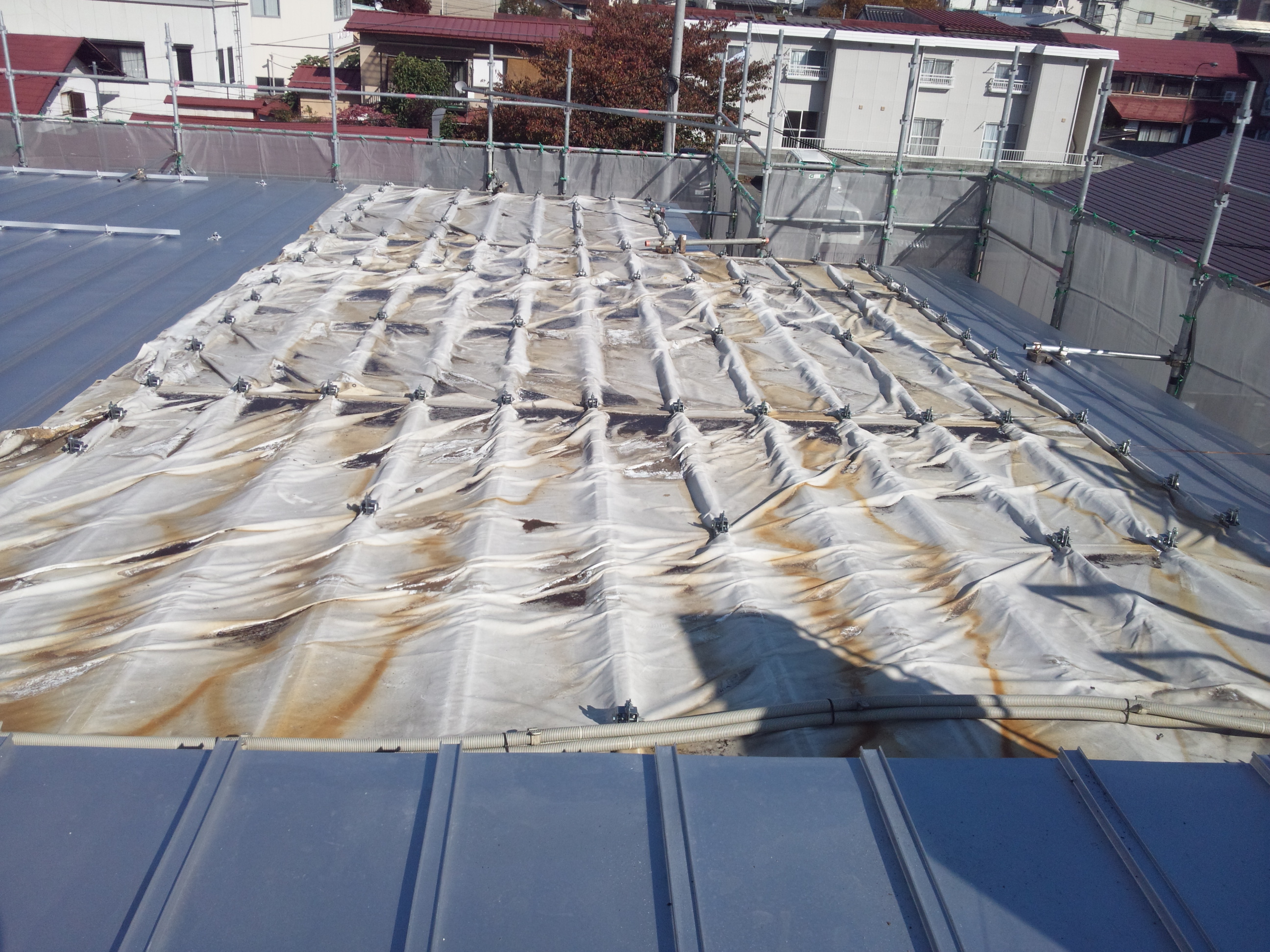 一般的にはこれで塗装完了。めでたしめでたしなんですが、こちらの現場はもう一仕事残っているんです。塩ビシートを施工前の状態に元に戻さなければなりません。