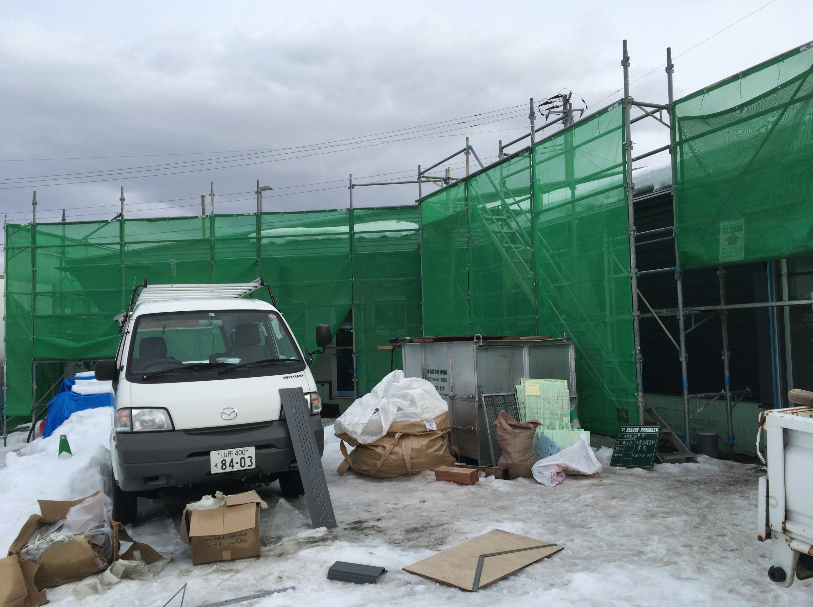 まだアルミサッシにガラスが入っていないので、気温はマイナスの世界です。