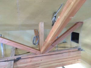 足場の上は、このように木材が組まれておりそこをクリアー塗料ですべて塗装していきます。