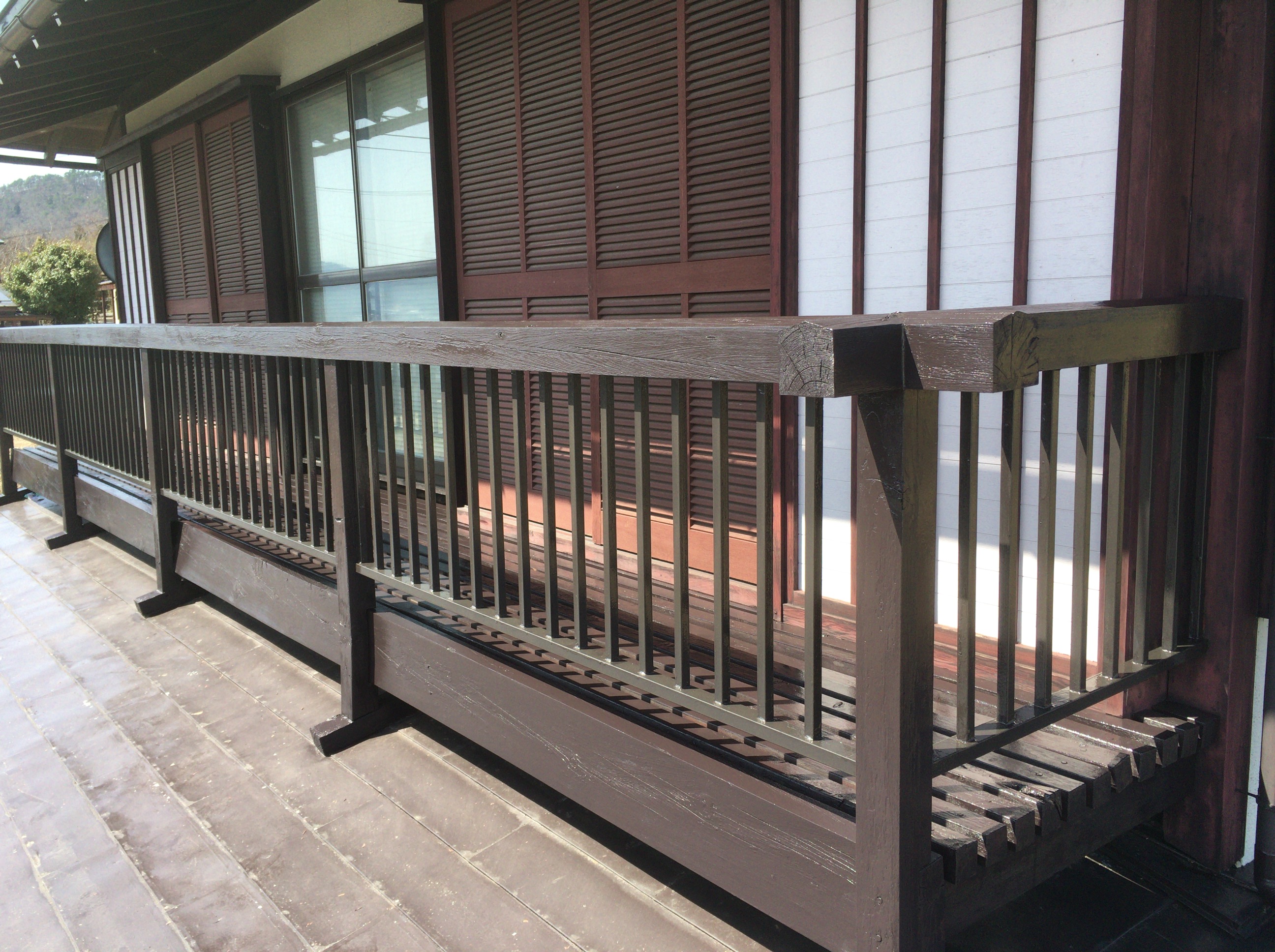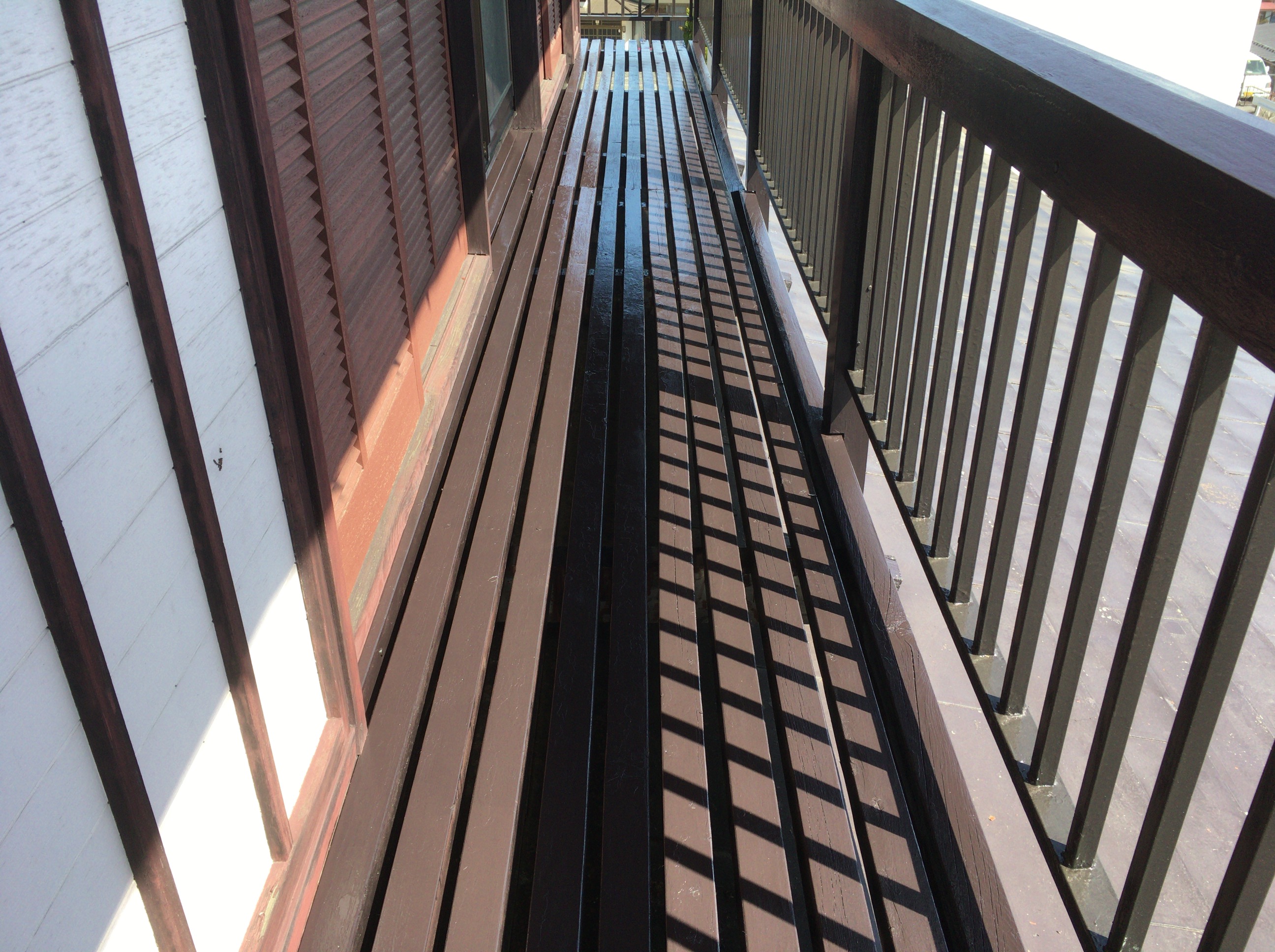 こちらのベランダ塗装も本日木部の3回目の塗装を終え見事完成いたしました。塗装前と見比べて下さいませ。