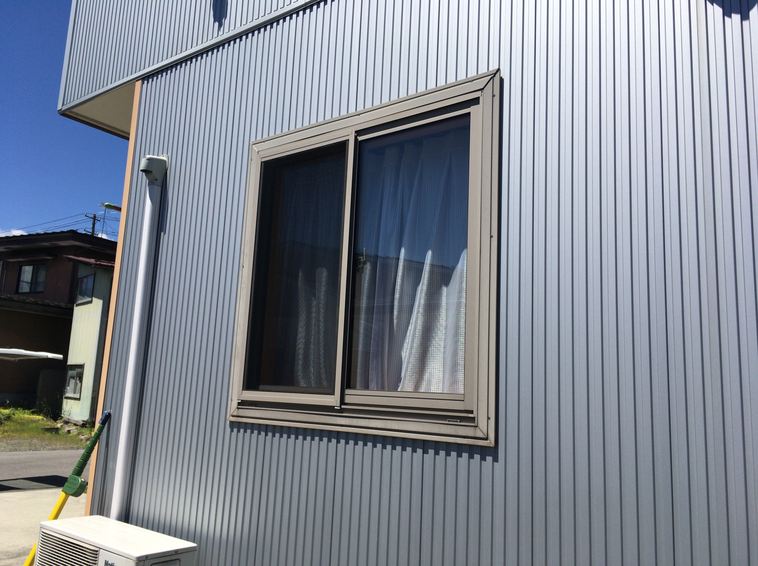 角波状の外壁材はまだまだ塗り替えは必要ありませんが、窓枠の変色が目立ちます。