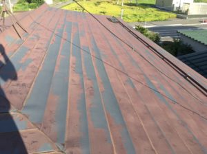 屋根洗浄作業の後は塗装に移るわけですが、錆が発生しておりますのでまずは錆落し(ケレン作業)です。