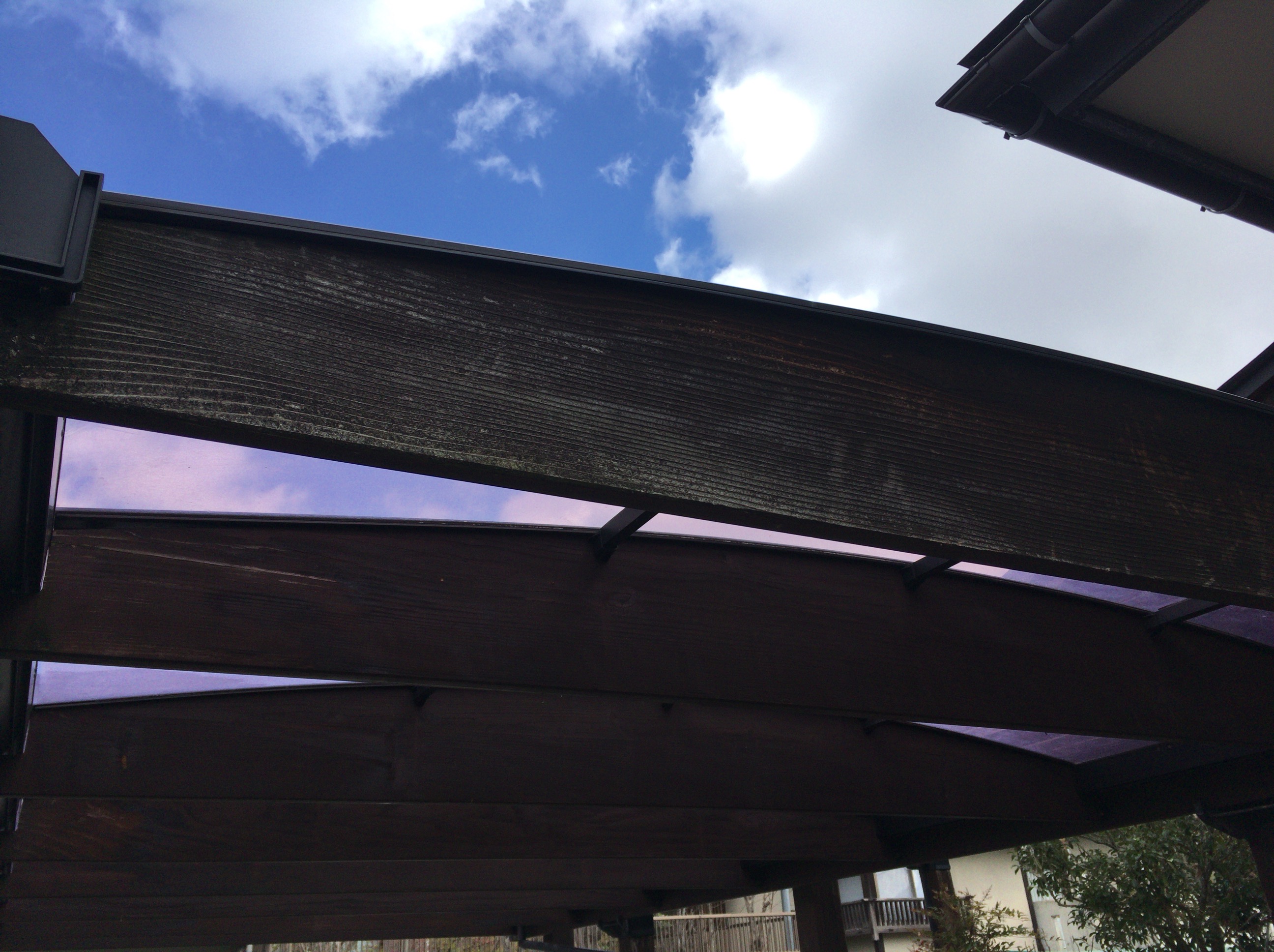 これから水を吸って増々劣化が進みますので、ややタイミングは遅くなっていますが、塗装しときます。