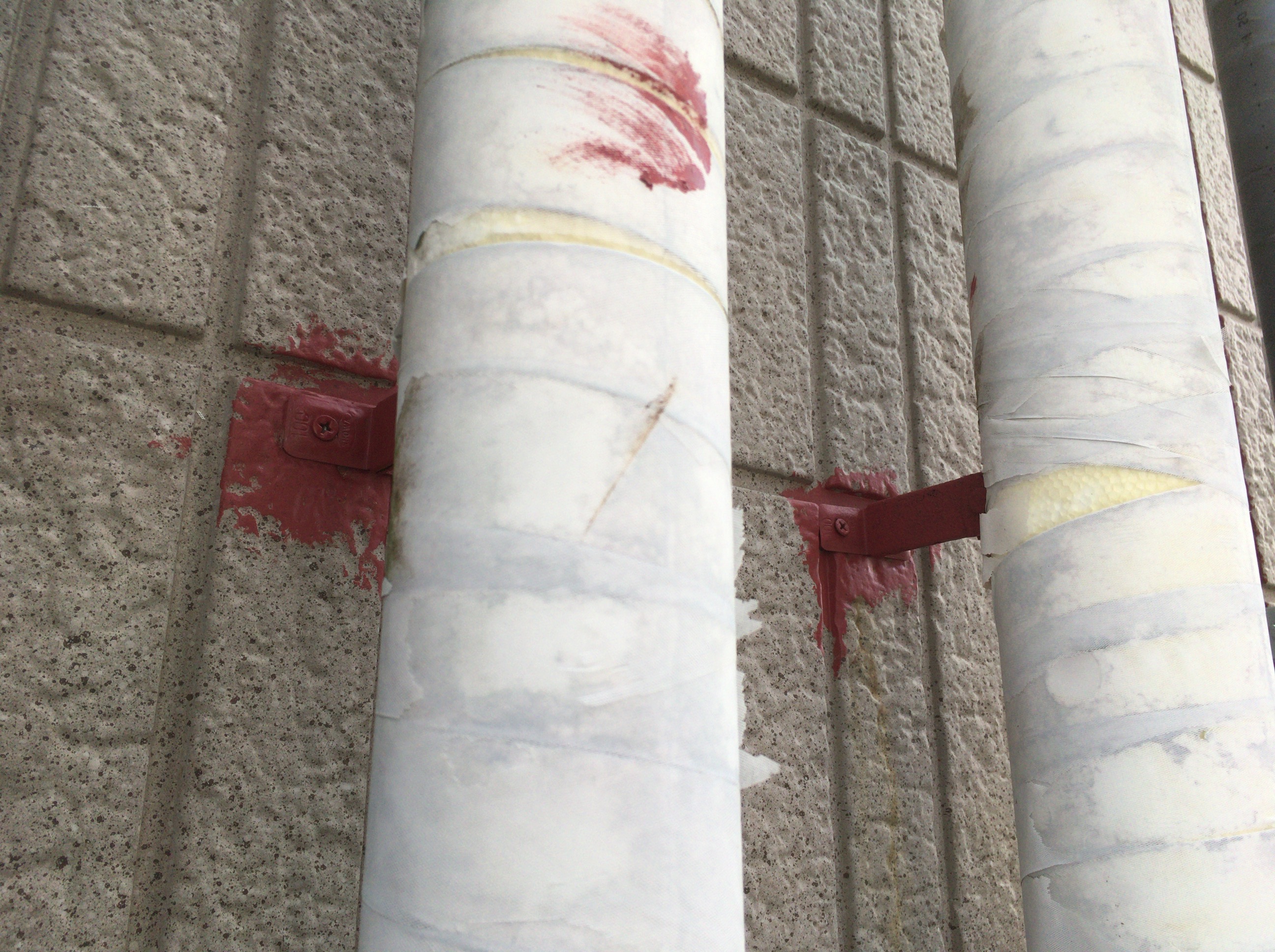 保温の発砲スチロールが取れない上水道は錆び止めを塗り塗装仕上げです。