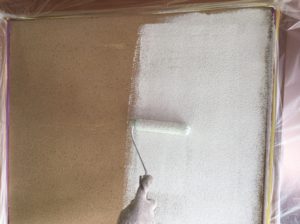 養生をしてからの塗装になりましたので、下塗りが終わった時点で夕方になってきましたので、お宅の内部ということで施主様にご迷惑がかからぬように早めの撤収になりました。上塗りは明日いたします。仕上がりを乞うご期待。