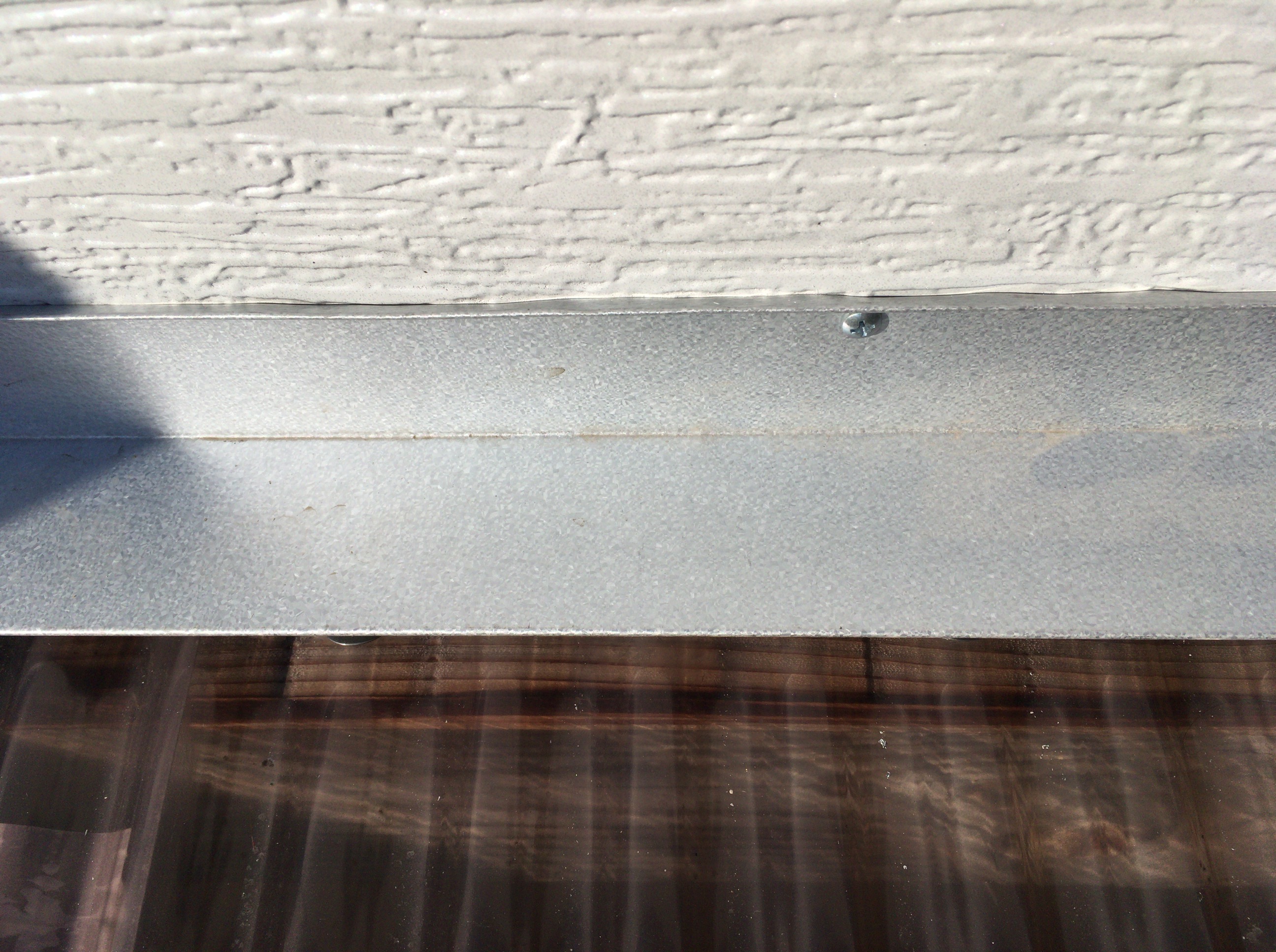 ガルバリウムの水切りトタンをシーリングをサンドしてビス固定。