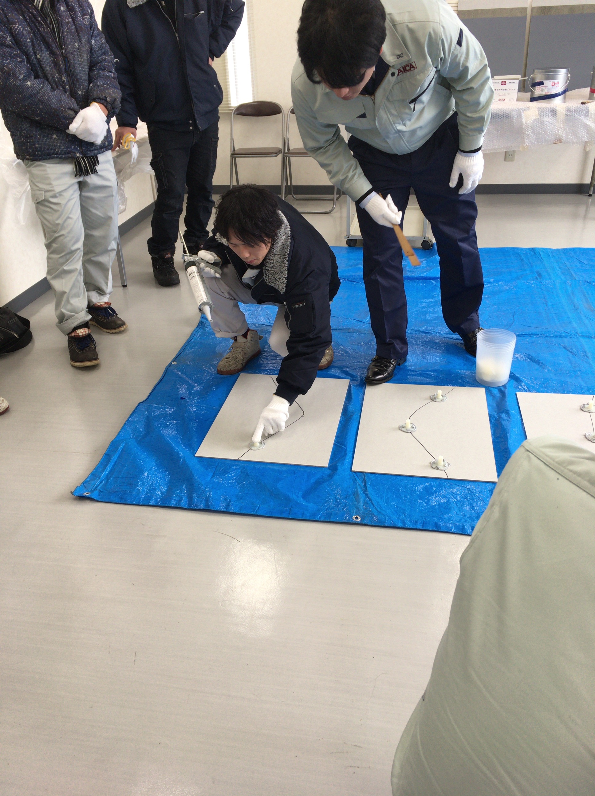乾燥を待つ間に上塗りの調色作業を行います。時間の有効活用です。
