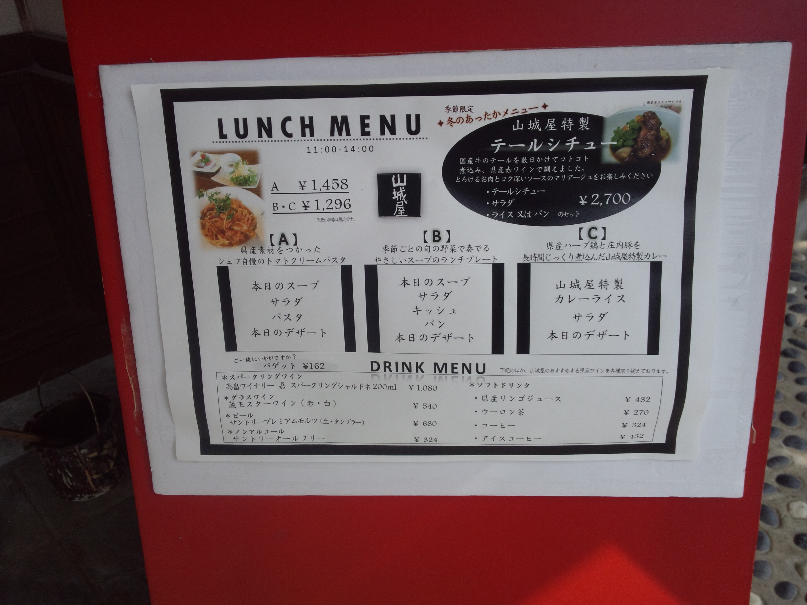 店頭にあったメニューです。